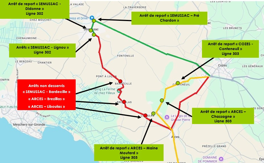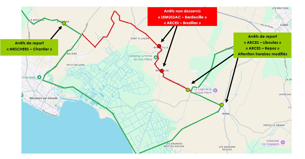 De plus, les horaires de passage aux arrêts situés à Arces sont modifiés.