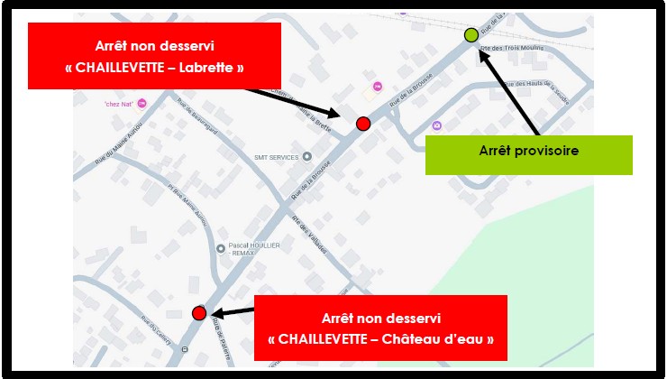 Les arrêts "CHAILLEVETTE - Labrette" et "CHAILLEVETTE - Château d'eau" ne sont pas desservis.